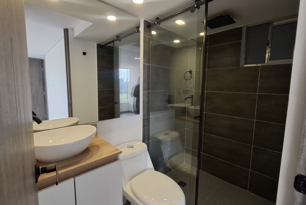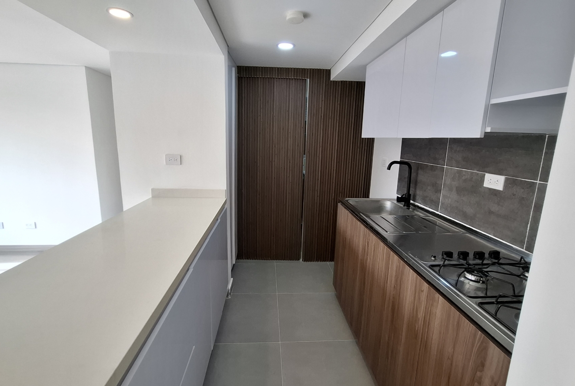 Apartamento para estrenar de 58.15 m² con acabados modernos, ideal para quienes buscan estrenar vivienda. Se caracteriza por su diseño contemporáneo, excelente iluminación natural y distribución funcional, dispone de tres habitaciones, la habitación principal cuenta con walk-in closet y baño privado; sala comedor, estudio, baño auxiliar, cocina integral y zona de lavado independiente.