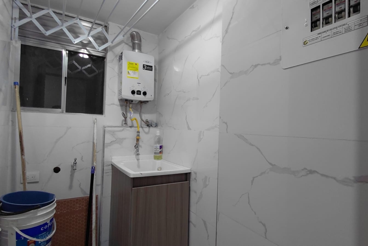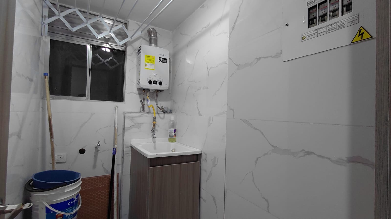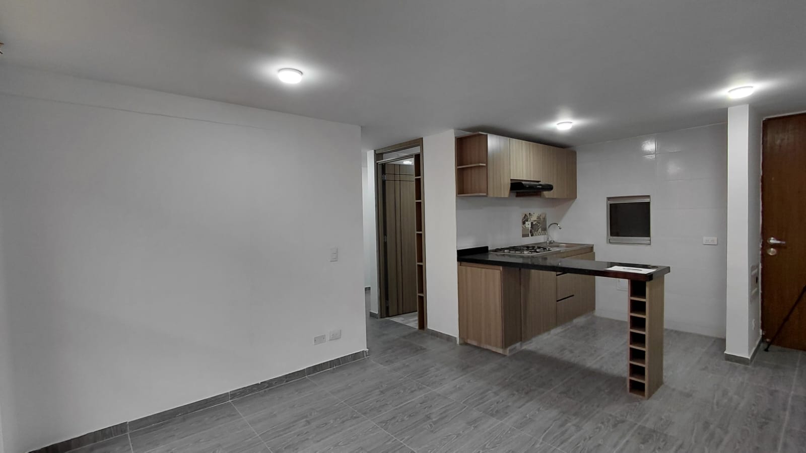 Apto en renta de 57.7 m², cuenta con tres habitaciones con closet, la habitación principal cuenta con baño privado; sala comedor, baño auxiliar, cocina semi-integral y zona de lavado. Piso en baldosa, calentador a gas, lámparas y apliques LED, parqueadero comunal.