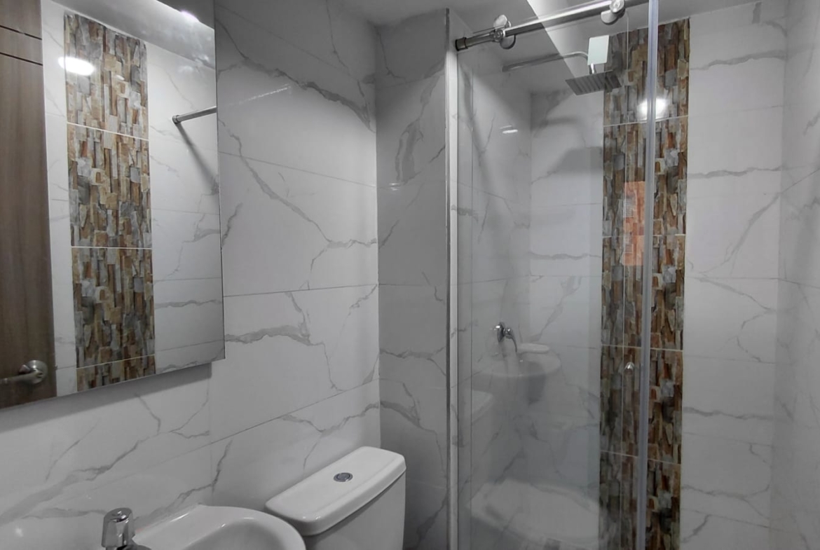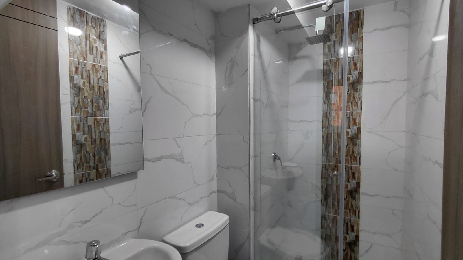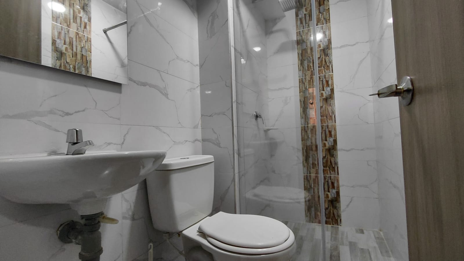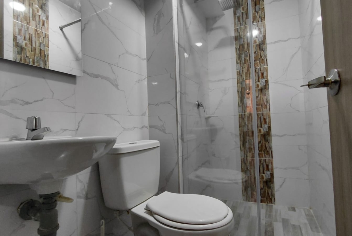 Apto en renta de 57.7 m², cuenta con tres habitaciones con closet, la habitación principal cuenta con baño privado; sala comedor, baño auxiliar, cocina semi-integral y zona de lavado. Piso en baldosa, calentador a gas, lámparas y apliques LED, parqueadero comunal.