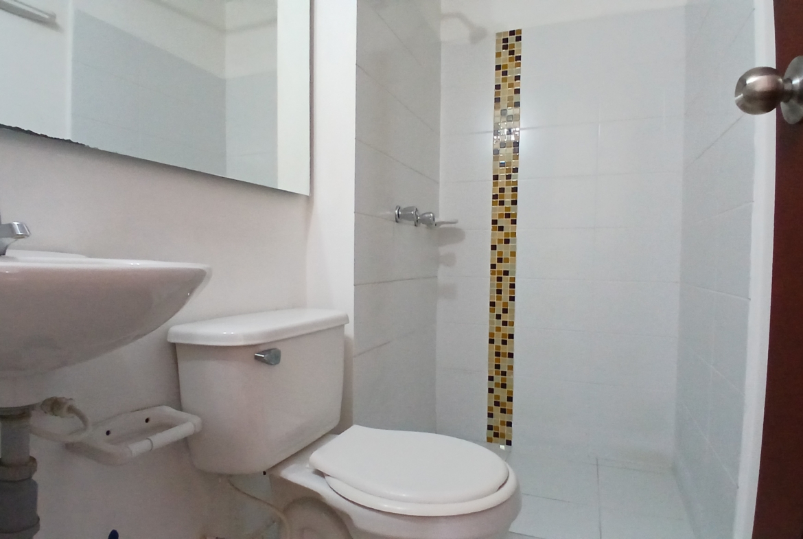 Apto en venta de 57m², cuenta con tres habitaciones, la habitación principal cuenta con closet y baño privado; sala comedor, baño auxiliar, cocina semi integral y zona de lavado. Piso en baldosa, calentador a gas, cuarto nivel, acceso por escalera, parqueadero comunal cubierto.